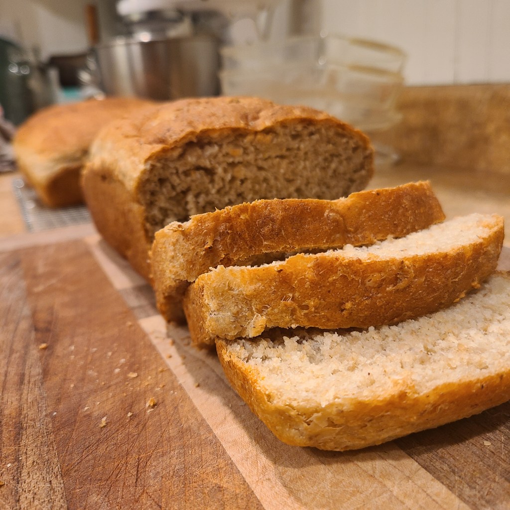 A year ago, I decided to just start baking bread and allow myself to be bad at it. Once I started actually baking the recipes instead of just reading them, however, I discovered that baking bread is a lot more forgiving than I thought. Sure, Paul Hollywood might stick his thumb in a slice and mark me down for the size of my crumb or the length of my proof, but I am not baking for TV. I am baking for me and my family, and when you put a slice of homemade bread with butter in front of either of my children it will not stay there long!
