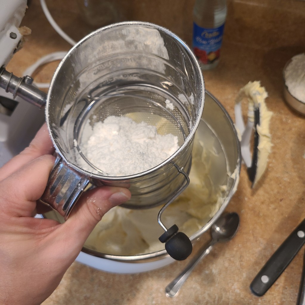 Step 5: Sift the dry ingredients into the large bowl and slowly stir to combine.