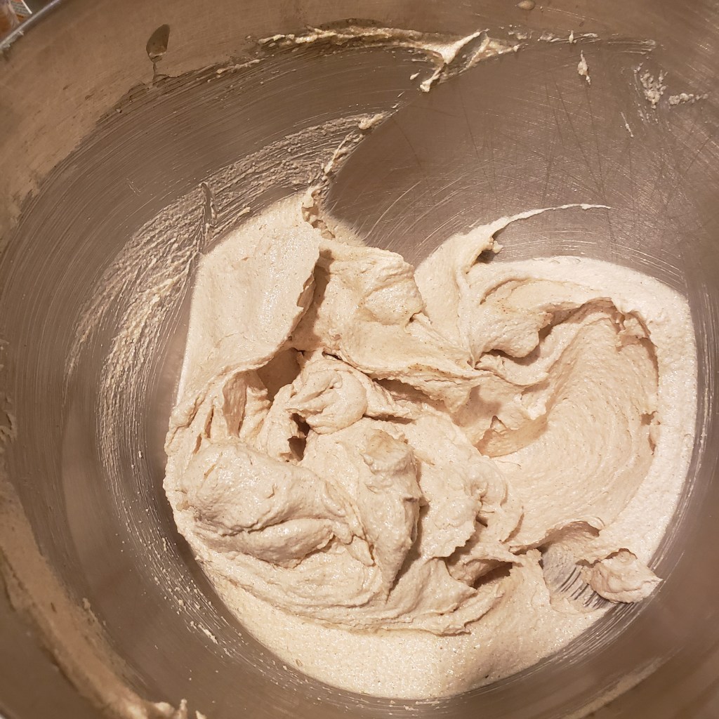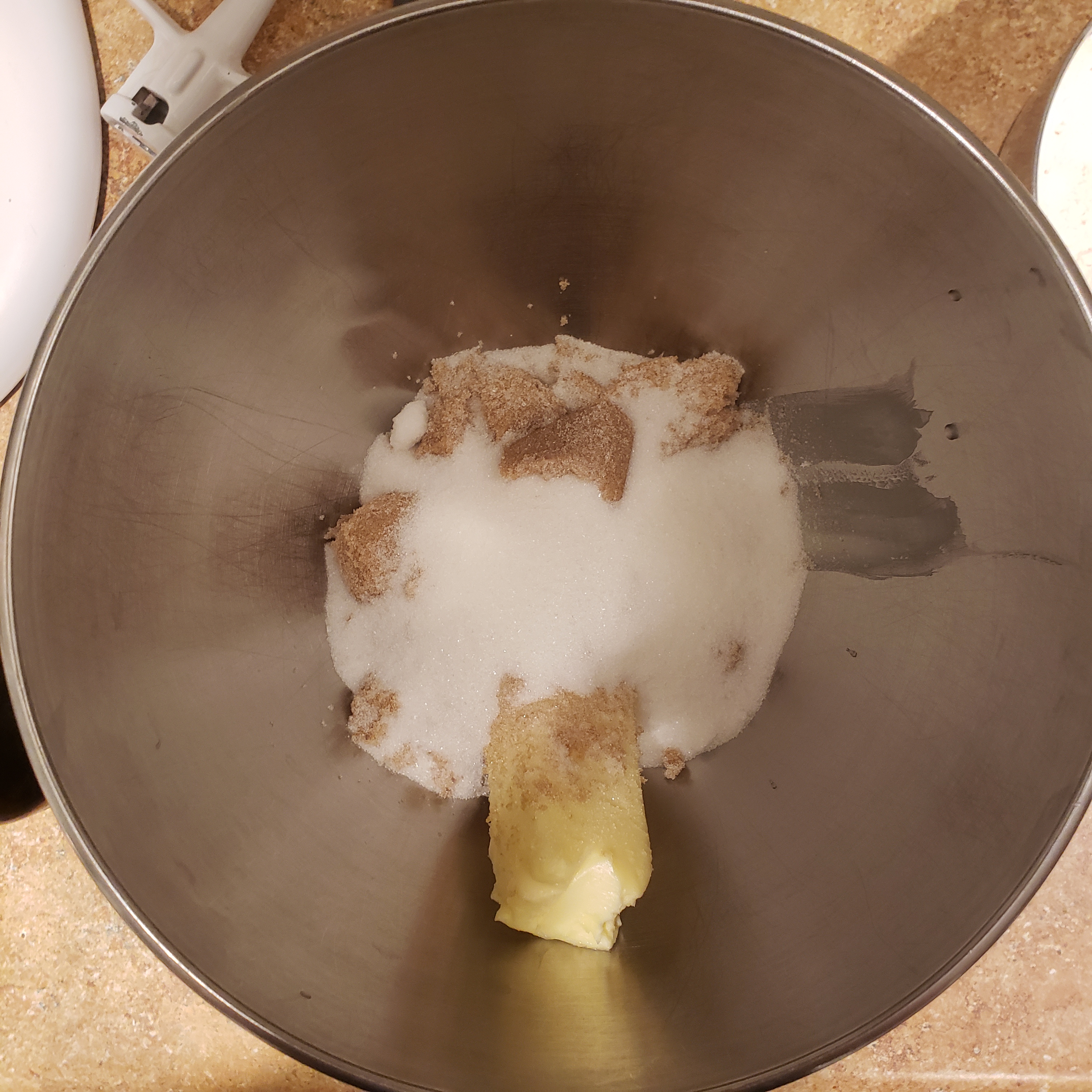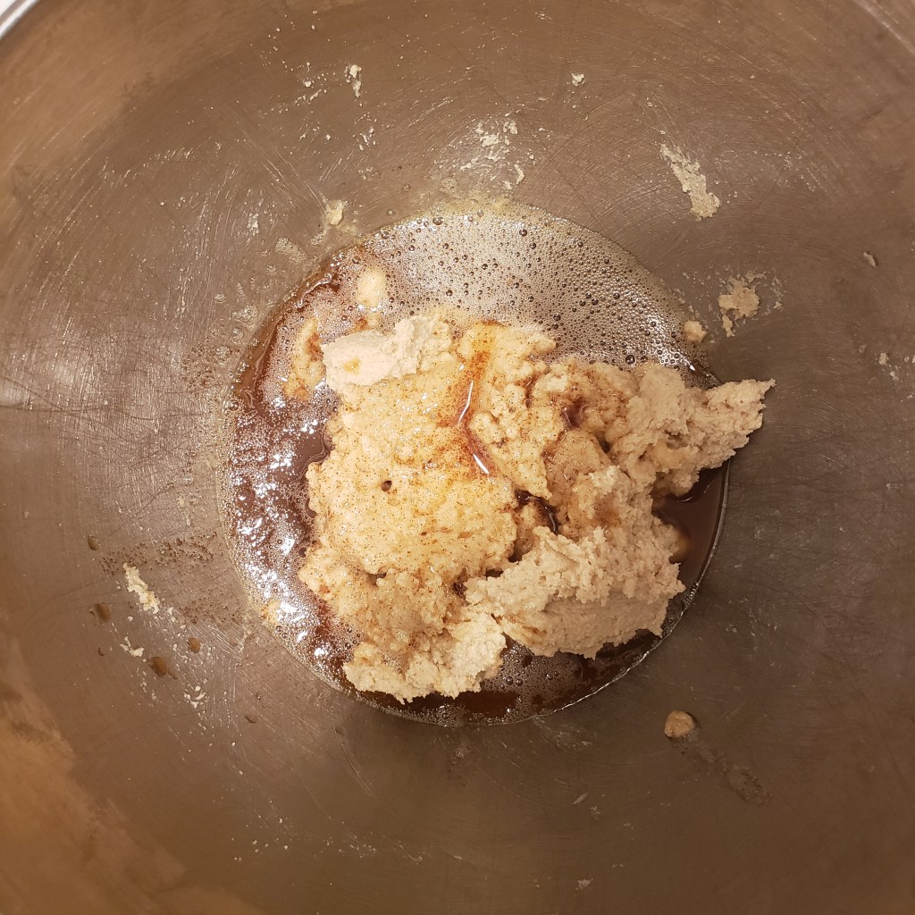 - To the stand mixer, add the sugars to the butter and cream them together for around 3 minutes. Scrape your bowl half way through.