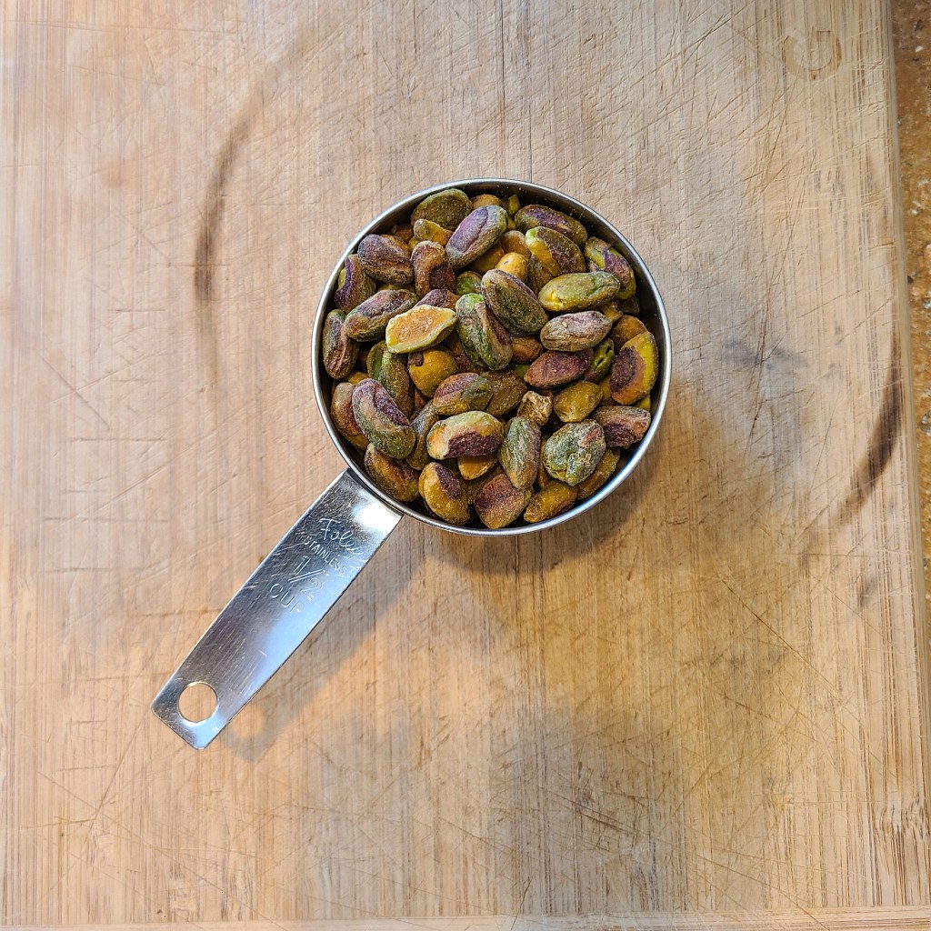 - ½c Pistachios (or Roasted Almonds)(chopped)(75g) Save 20 whole for decoration.