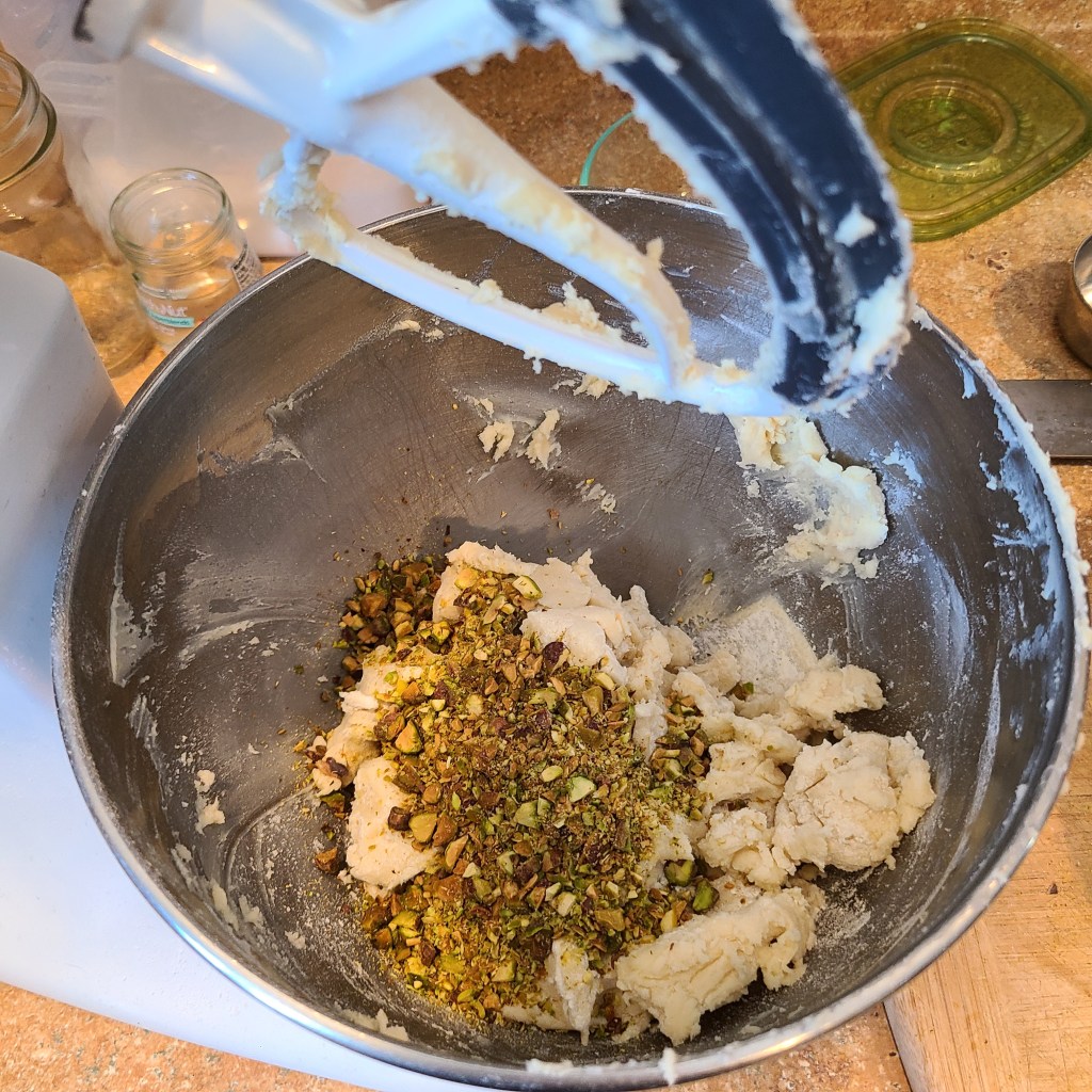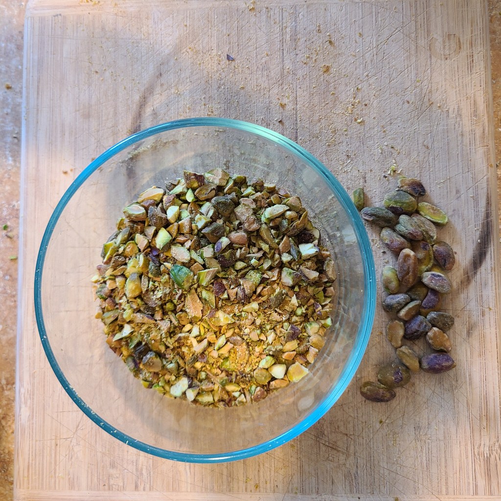 - Chop pistachios and add to the batter. Remove 20 to include as decoration