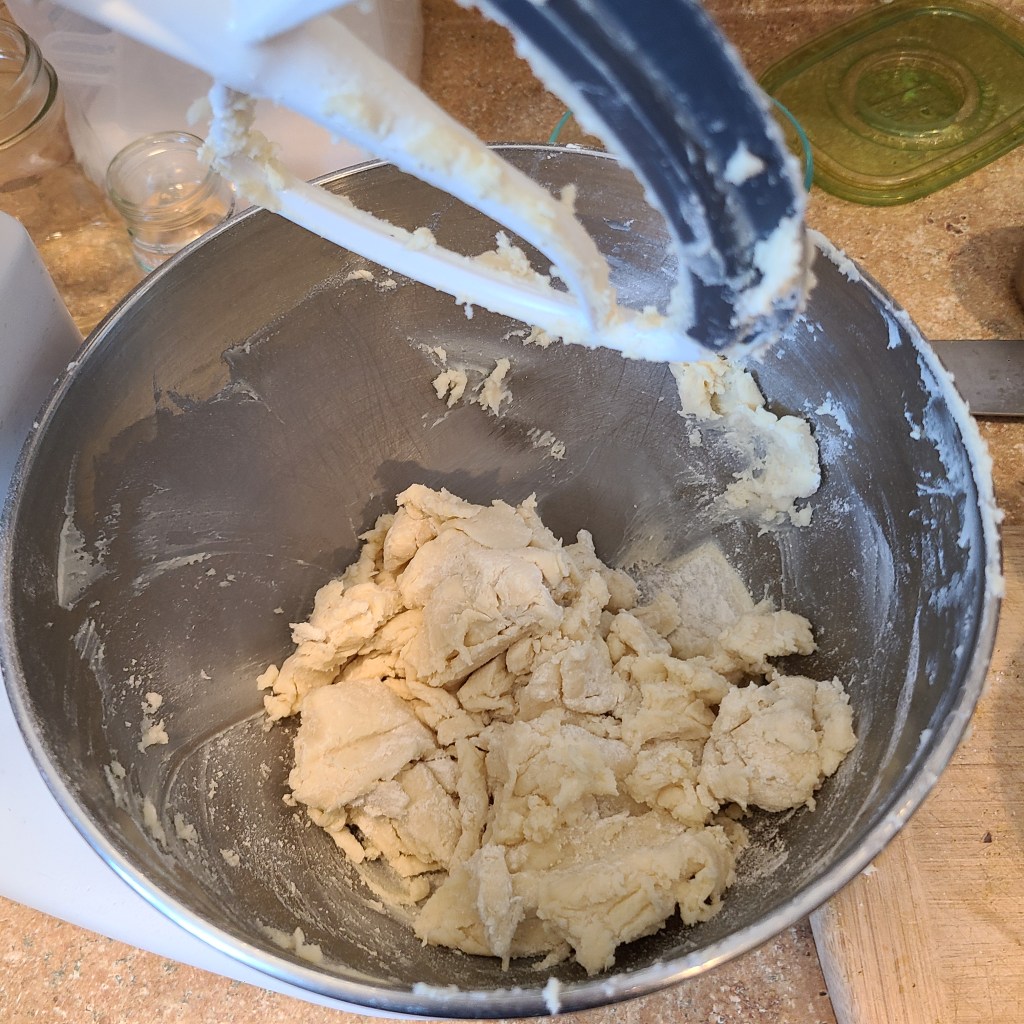 - Dump the shaggy dough onto plastic wrap. Mix with your hands until the dough is formed. Wrap in plastic and refrigerate for at least 20-30 minutes.