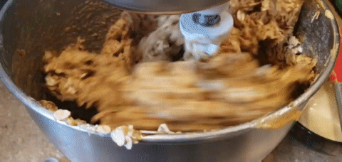 - Add the Peanut Butter to the bowl. Mix for 3 minutes until it is all incorporated.